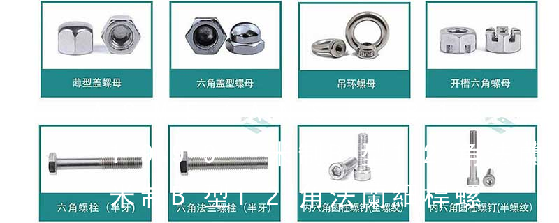 2、合金鋼國標螺母的標準尺寸為5/16-4"。合金鋼國標螺母包括:六角螺母(GB6170/DIN934、GB6175),法蘭面螺母(GB6177/DIN6923)圓螺母(GB812)、小圓螺母(GB810)、美制方螺母、美制六角螺母(ANSI/ASME B18.2.2) 螺母常用的國家標準有《GB41 Ⅰ型六角螺母——C級》、《GB6170 Ⅰ型六角螺母——A、B級》、《GB6171Ⅰ型六角螺母—細牙—A、B級》、《GB6172六角薄螺母——A、B級—倒角》、《GB6173六角薄螺母——細牙—A、B級》;